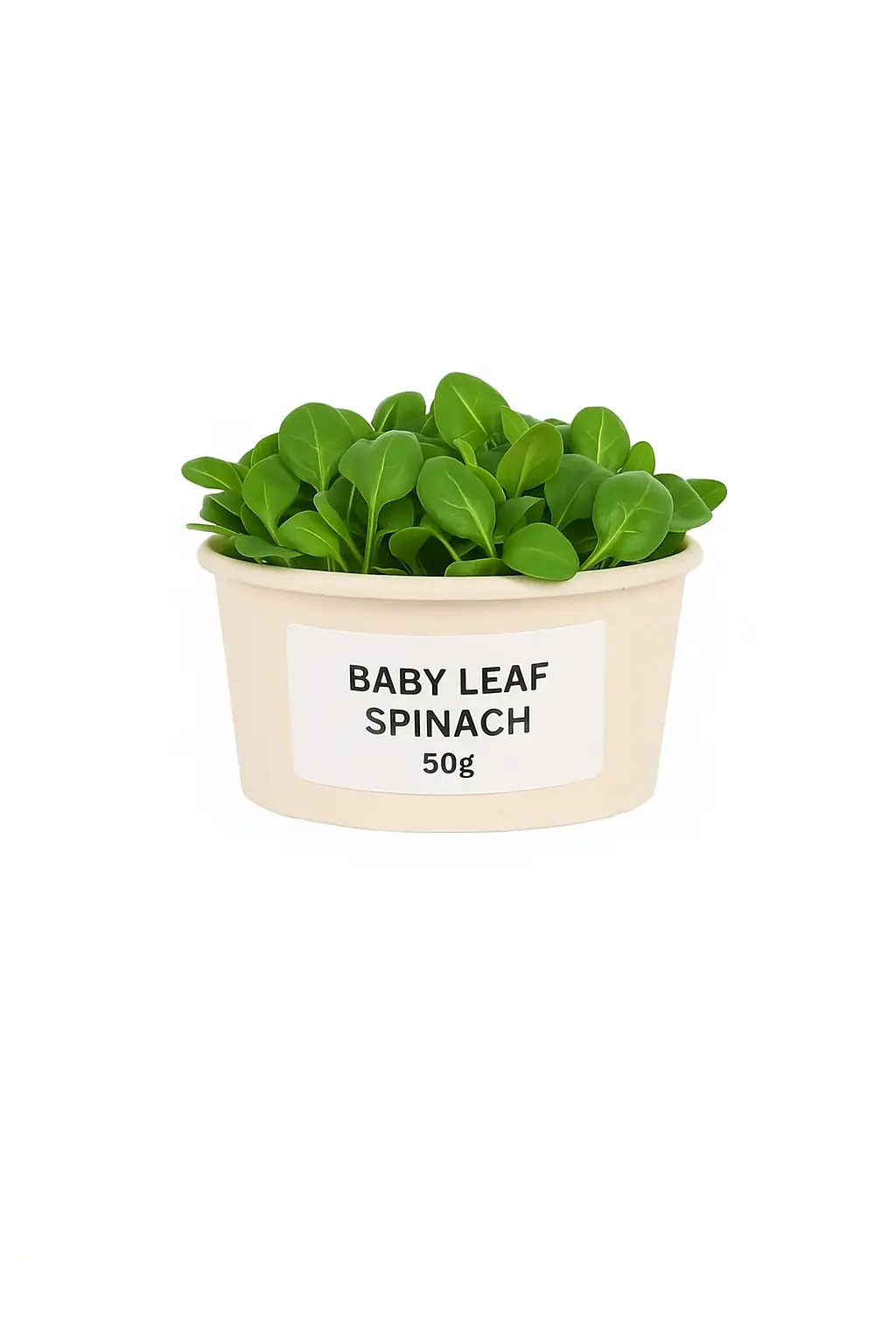 Baby spinach is a tender, nutrient-rich leafy green with a mild, slightly sweet flavor, great for salads and smoothies.